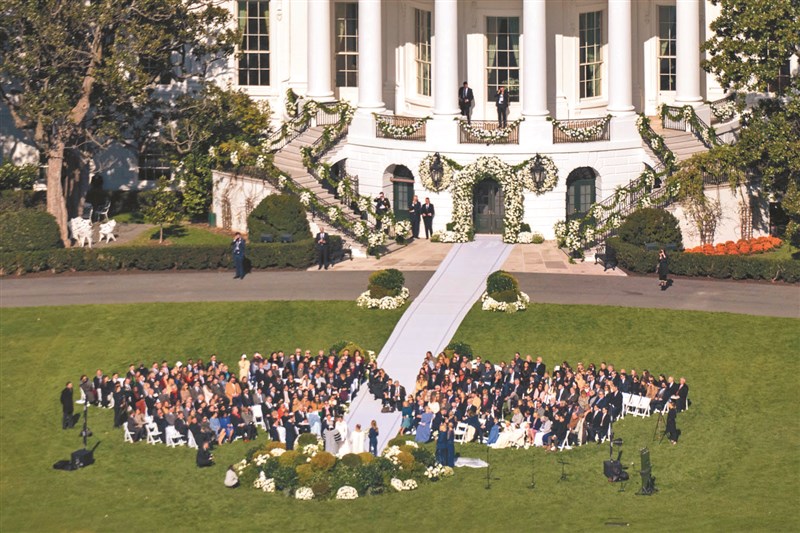 白宮過去舉辦過十八場婚禮,包括一九七一年時任總統尼克森的女兒翠西亞(Tricia)、二○一三年時任總統歐巴馬的首席攝影官蘇薩(Pete Souza)都在白宮成婚。