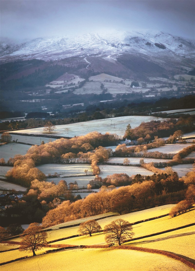 〈冬季的布雷肯〉記錄的是從南威爾士布雷肯比肯斯國家公園(Brecon Beacons National Park)的山間,向西俯瞰該公園的非凡景觀。戴維斯的有利拍攝位置,在一個畫面中成功捕捉到兩個季節不同色調,遠處是白雪皚皚的山脈,而前景卻是溫暖陽光下美麗的綿延青山。