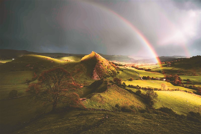 「經典景觀」類別冠軍作品〈Ascension〉,彩虹在威爾士被稱為「龍脊」的景區上空。圖/取自大賽官網