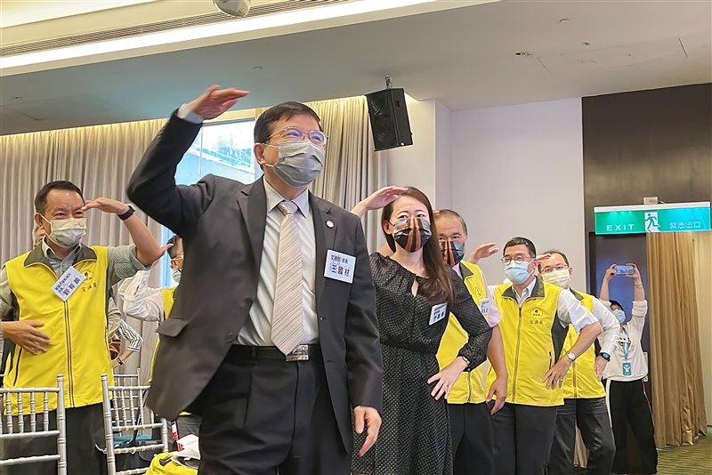交通部22日舉辦「111年度路老師頒獎授證典禮」,交通部長王國材(前左)出席,並參與帶動唱活動。圖/中央社
