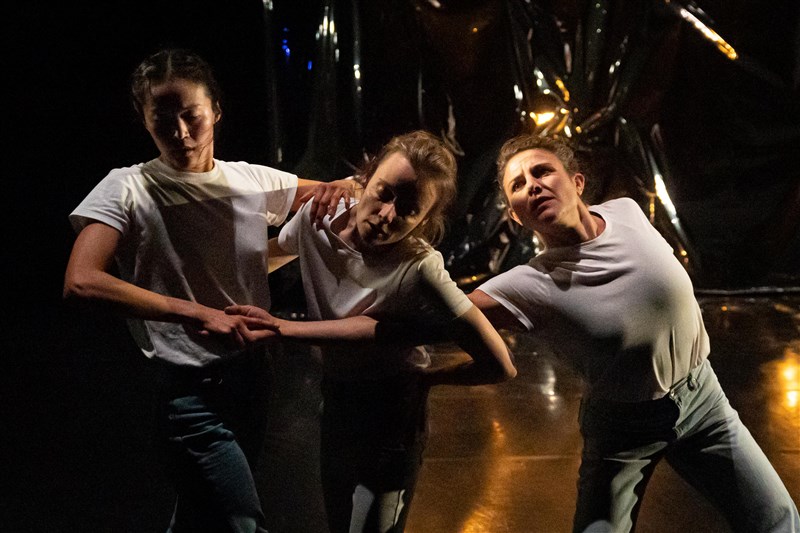舞者李貞葳、Esse Vanderbruggen及Jessica Simet共同演出舞作《崩-無盡之下》。圖/國家兩廳院提供