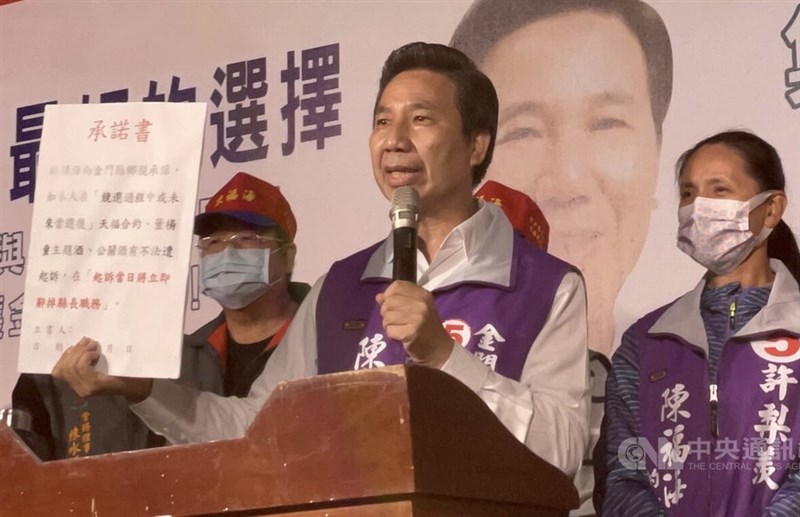 無黨籍金門縣長候選人陳福海自行宣布當選。圖/中央社