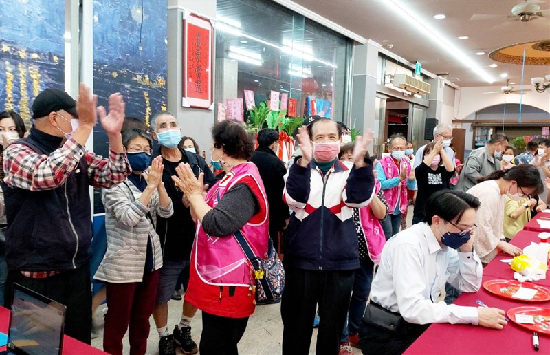 林姿妙開票一路穩定領先,競選總部湧入支持者開心歡呼。圖╱戴永華