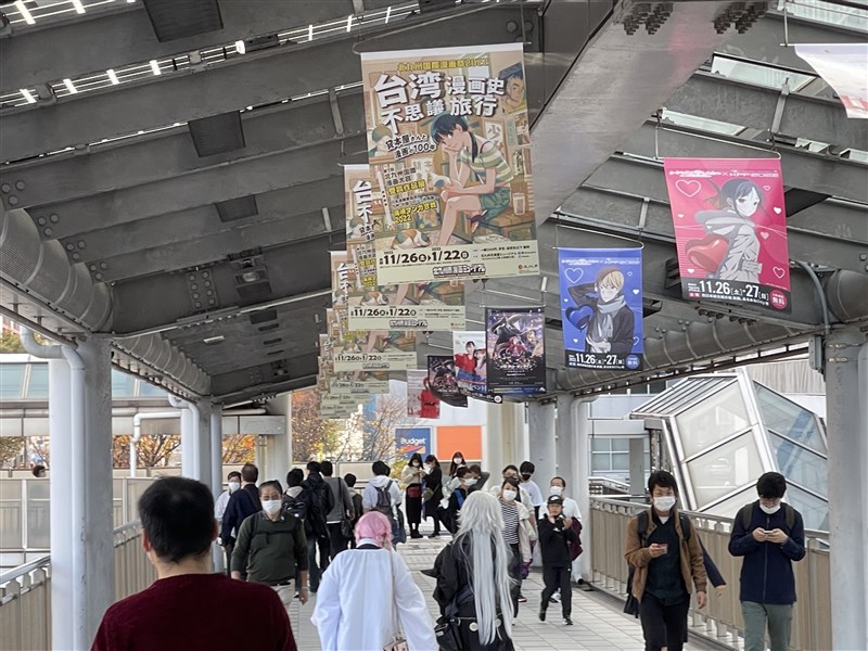 台灣漫畫特展,日本北九州小倉車站可見宣傳物。圖╱中央社