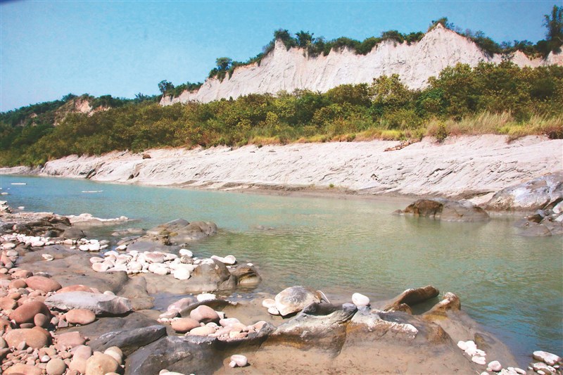 「風之谷」河床布滿礫石,曾發現貝類等化石。圖/記者江俊亮