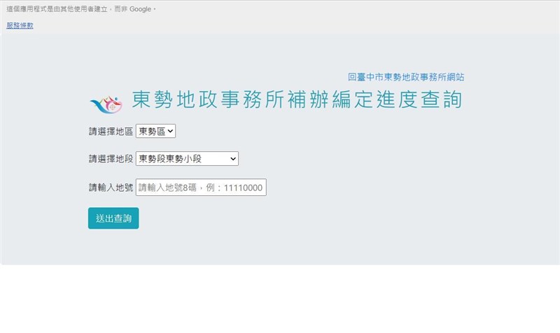 台中市東勢地政事務所推出「補辦編定乎你知」系統,方便民眾查詢。圖╱台中市政府提供