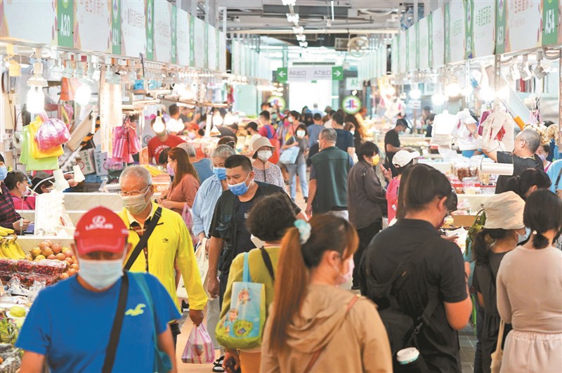 行政院主計總處29日公布最新經濟預測,估2022年、2023年經濟成長率分別為3.06%及2.75%,2023年「保3」落空。圖為民眾在台北市北投中繼市場採買。圖/中央社
