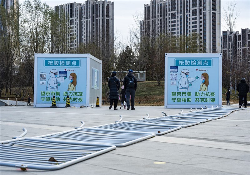 北京市當局近日鬆綁疫情防控措施,縮減核酸檢測要求,大幅減少核酸檢測點運作。圖為3日,北京朝陽區望京街道一處暫停服務的核酸檢測採樣點。圖/新華社