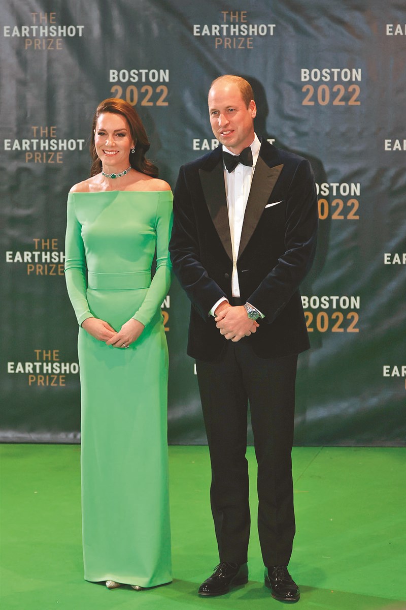 【本報綜合外電報導】正在美國訪問的英國威廉王子與凱特王妃,2日晚間出席波士頓舉行的Earthshot Prize Awards頒獎典禮時,凱特一襲綠色禮服,非常符合典禮環保主題。更猛的是,凱特穿的是租來的禮服!每晚租金約新台幣約2800元!