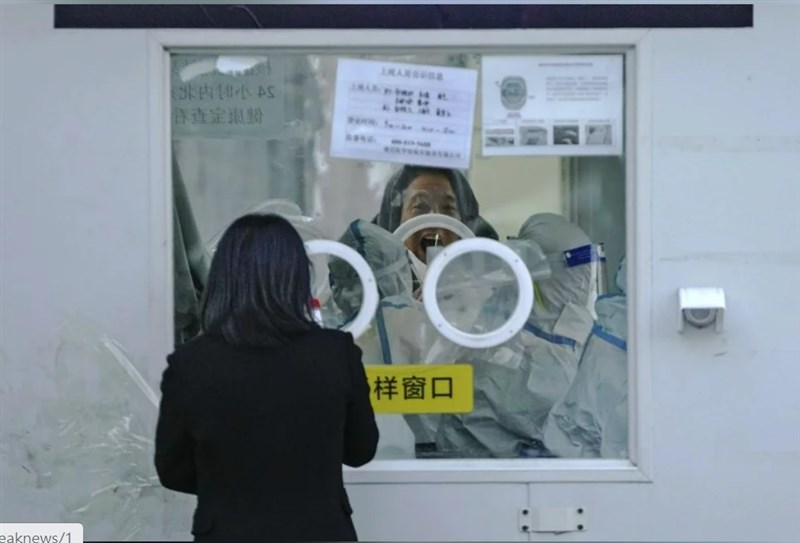 一名男子在北京的冠狀病毒檢測點進行常規咽拭子檢查。圖/美聯社