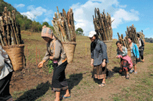 牛津大學教授邁爾斯在河內舉行的亞太森林周會議發表主題演說時指出,雨林遭破壞是譗我們面臨的超級危機豃。東南亞的濫砍濫伐,占二○○五年全球減少雨林面積的百分之十九。比較起來,南美洲開闢牧場所占的影響比率只有百分之五,而這原本是雨林縮減的重要因素。因為寮國北部靠山區省份的村民,背著從山中砍來的樹枝。圖/法新社