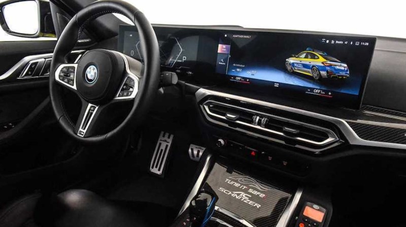 BMW i4 M50 Police Car改裝警車還換上了20吋的AC4 Flow Forming黑/銀雙色輪圈,並搭配Hankook Ventus S1 evo 3 輪胎(前255/35後 265/35 ),提供車輛優異的循跡性,外觀上當然少不了Polizei警車塗裝與紅藍警示燈。座艙內則換上了鋁合金踏板組以及i-Drive系統控制旋鈕飾蓋。