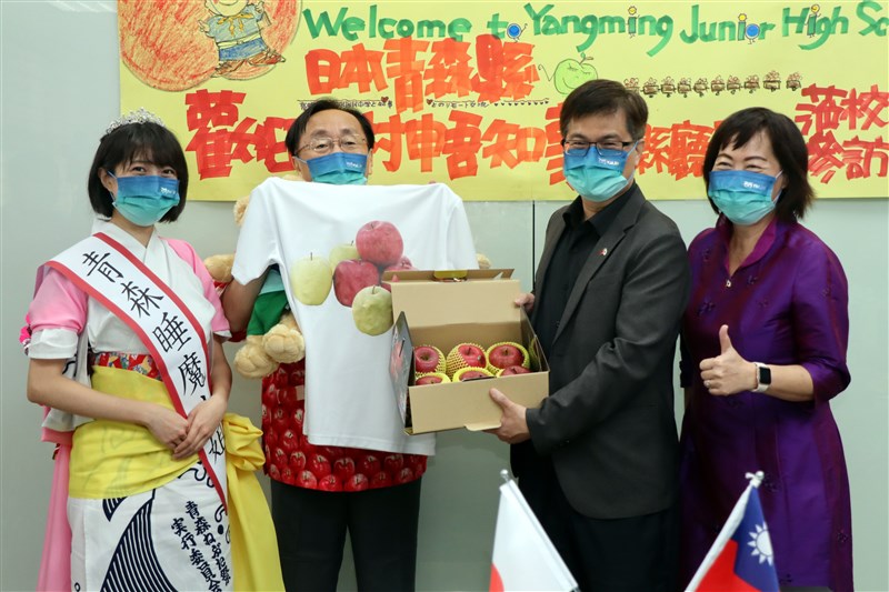 【記者王淑芬高雄報導】日本青森縣知事三村申吾率團訪問高雄市陽明國中,是為履行2019年雙方的約定,今天還特別帶來青森蘋果致意,並邀請師生持續到青森訪問交流。校方則以學生3D列印製作陽明校徽、青森蘋果圖像當做回贈禮物,展現濃厚的情誼。