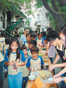此外,為教導菲童惜福、結緣、節儉,從善用錢財開始,第二天的點心時段,以園遊會方式,分發每位菲童三百點票券,向設攤的馬尼拉佛光青年團員購買油、鹽、糖、蕃薯、香蕉、芝士粉、玉蜀黍等,讓兒童體驗上市場買食材後,必需再經過烹調料理後,才能成為桌上豐富的點心。活潑的教導方式,精采的課程內容,使兒童懷著感激、愉快的心情,寓教於樂。(人間社記者黃珍珍攝)