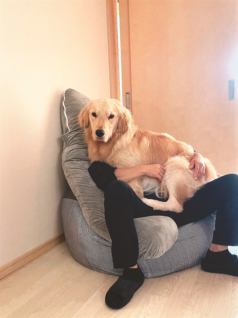 日本一名網友「@i7u1v」在推特上分享一張照片,並在內文中說:「這是一隻認為自己是貴賓狗的大型犬。」只見照片當中,一歲多的黃金獵犬イブ看見主人在沙發上休息,直接趴上去,對主人來說就像是個「甜蜜的負擔」。