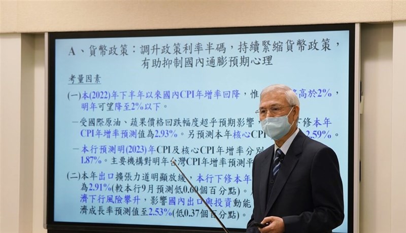 全球經濟成長放緩,央行對於台灣經濟展望也趨於保守,估今、明年經濟成長率都不保3,分別下修2022年、2023年經濟成長率至2.91%及2.53%;對於明年物價預測則維持不變,估2023年消費者物價上漲率(CPI)及核心CPI為1.88%及1.87%。