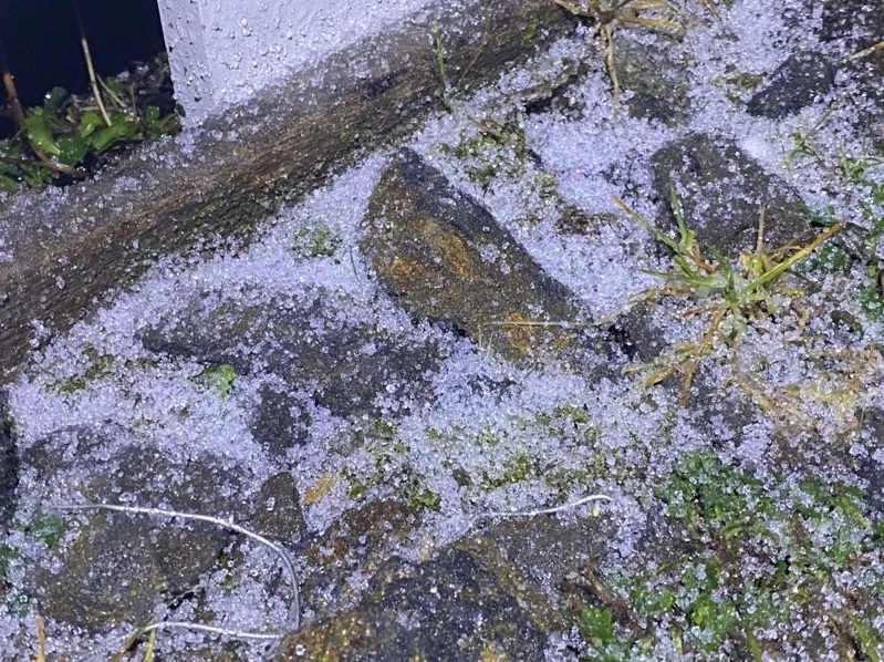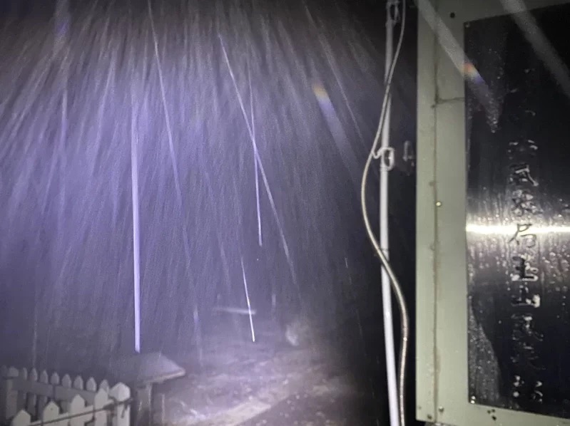 玉山氣象站今天晚間6點50分出現雨夾冰霰。圖/氣象局提供