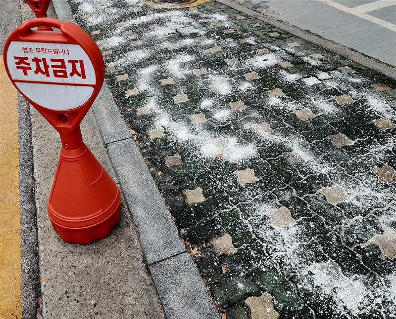 南韓冬天地面會撒上氯化鈣,防止地面結冰。 圖/駐南韓台北代表部