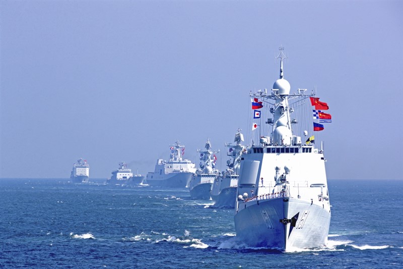 共軍宣布將有5艘水面艦艇參加2022年中俄海上聯合軍演。圖為2016年9月中俄海上聯合軍事演習共軍海軍編隊。圖/中新社