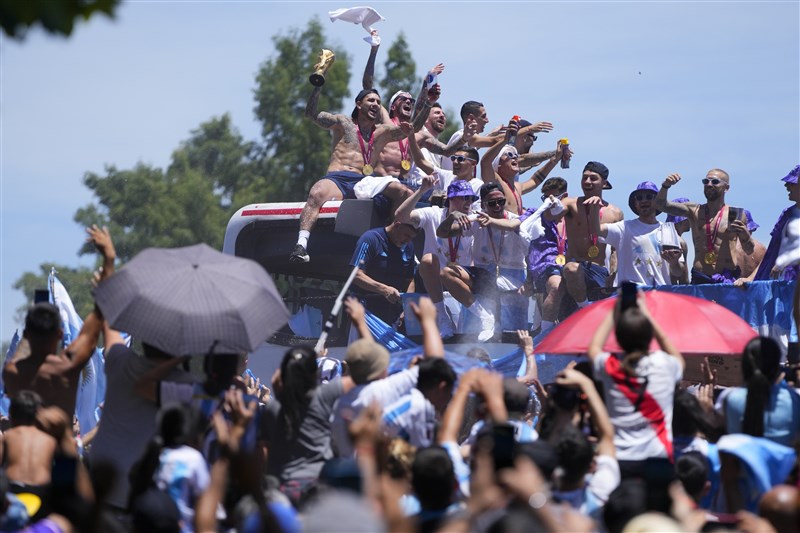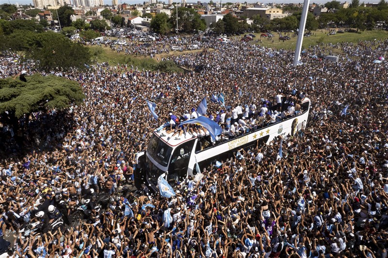 數百萬球迷爭睹風采 阿根廷世足冠軍遊行改搭直升機 |2022.12.21 語音朗讀 1101觀看次 字級 大 中 小 遊行路線全長約30公里,沿途都是滿坑滿谷的球迷,遊行進行3小時後,巴士還沒走完1/3路程。圖/美聯社 【本報綜合外電報導】阿根廷在2022卡達世界盃足球賽奪冠,國家隊成員20日搭敞篷巴士在首都布宜諾斯艾利斯遊行,接受球迷歡呼,但現場人數實在太多,只好改用直升機飛越遊行路線。綜合法新和路透報導,遊行路線從布宜諾斯艾利斯(Buenos Aires)郊區一路前進至市中心,全長約30公里,沿途都是滿坑滿谷的球迷,車隊行進速度十分緩慢,遊行進行3小時後,巴士還沒走完1/3路程。當地媒體估,現場人數約達400萬,政府則估計球迷人數達500至600萬。巴士緩緩開了近5個小時後,有關單位決定放棄巴士,改讓隊長梅西(Lionel Messi)、總教練斯卡洛尼(Lionel Scaloni)及中場球員德保羅(Rodrigo De Paul),帶著世界盃總冠軍獎盃大力神盃搭直升機飛越遊行路線上空,包括方尖碑(Obelisk)。阿根廷總統府發言人塞魯蒂(Gabriela Cerruti)在社群媒體推特(Twitter)發文表示,民眾爆量湧入情況下,沒辦法再繼續走陸路。許多球迷以及在市中心方尖碑周圍等待的大批民眾,都無法親眼見到他們的偶像。阿根廷在2022卡達世界盃足球賽奪冠,國家隊成員20日搭敞篷巴士在首都布宜諾斯艾利斯遊行,接受球迷歡呼。圖/美聯社阿根廷足協主席塔比亞(Claudio Tapia)表示,臨時取消勝利遊行一事是警方的決定。他在推特上說:「他們不准我們到方尖碑去和民眾打招呼。」他還說:「護送我們的安全單位不讓我們繼續(搭巴士)前進,我代表所有冠軍隊成員致上萬分歉意,實在是太令人遺憾了。」阿根廷警方發布聲明暗示遊行已經結束,並用直升機將球員載回阿根廷足協的訓練基地。巴士緩緩開了近5小時後,決定改讓隊長梅西、總教練斯卡洛尼及中場球員德保羅,帶著大力神盃搭直升機飛越遊行路線上空,包括方尖碑。圖/美聯社 前一篇文章 世界盃網路熱潮 梅西奪冠照獲讚6600萬 破IG紀錄 下一篇文章 遵照網友意見 馬斯克:將辭推特執行長 熱門新聞 01【寬鼎畫語】 看不見的真相2025.11.1002補充纖維、鈣、鎂、鉀 預防多種疾病風險2025.11.1103南天健康日 身心靈課程吸引社區民眾2025.11.1004鳳凰撲台 今明北東雨量恐紫爆 2025.11.1005巴黎佛光人 重陽敬老長幼同樂2025.11.1006COP30揭幕 關注氣候人權與森林2025.11.1007星雲大師全集【經義】佛法滿人間—佛法滿人間 常不輕2025.11.1008星雲大師全集【經義】佛法滿人間—佛法滿人間 悲智雙運2025.11.1009人間佛教聯合總會 推人間佛教國際化2025.11.1010巨型蔬果牆 行銷中台灣2025.11.10 訂閱電子報 台北市 天氣預報 台灣一週天氣預報 相關報導 印尼村落慶典 噴火表演吸睛警告日本 陸黃海軍演、籲暫勿遊日 墨西哥熱氣球節 高空爭豔神舟21號 成功返地球習近平晤泰王 推進中泰鐵路貝佐斯巨型火箭升空
