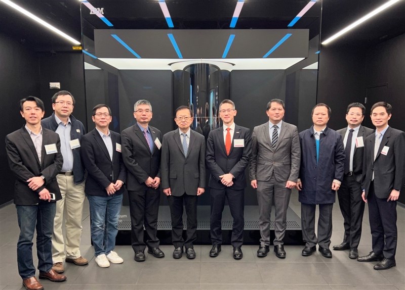 清華代表團拜會IBM,由IBM副總陳自強博士(左五)親自導覽參觀效率最高的量子電腦。圖/清大提供