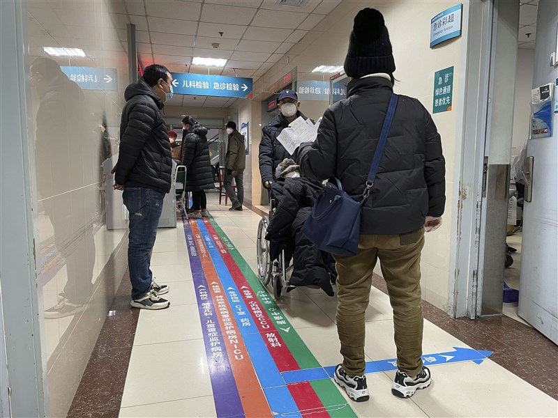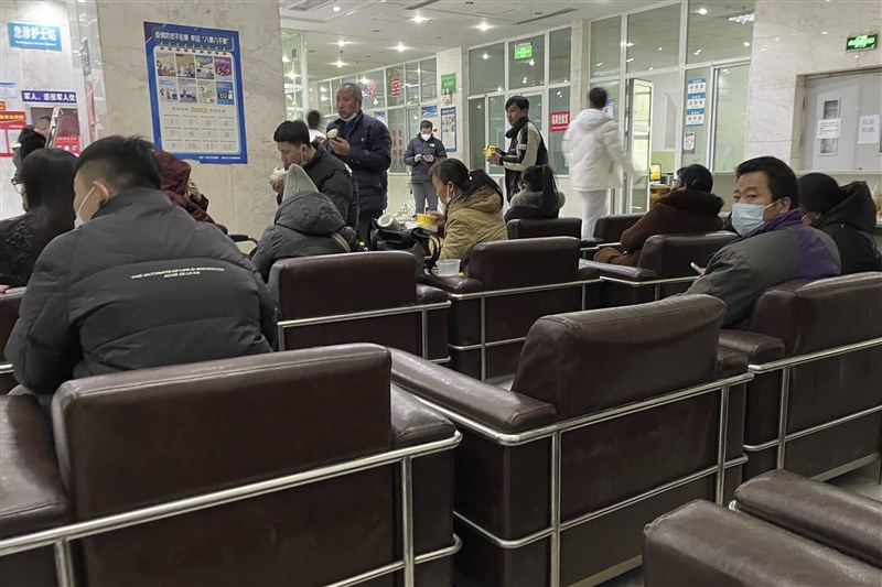 圖為12月21日訪客在中國河北省涿州市保定市第二中心醫院急診室等候。圖/美聯社貴州畢節另一家鄉鎮衛生院院長表示,他所在的鄉鎮患有慢性病的老人接近5%,隨著疫情愈來愈嚴重,老年人救治肯定是一個難點。