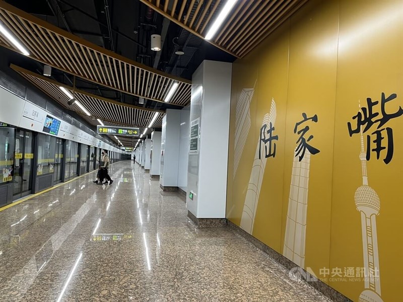 上海市COVID-19疫情蔓延,民眾外出意願大減,地鐵站單日客運量驟降,上海地鐵12月25日宣布,動態調整營運情形,班距間隔拉大。圖為上海地鐵陸家嘴站畫面,月台僅見少數乘客。圖/中央社