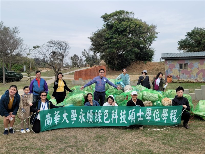 從去年起,南華就與金門烈嶼鄉公所合作,選擇國家級地質景觀區南山頭玄武岩,建立氣候變遷及海岸地質教案,培訓環境教育解說人才。此外,還與在地青農「阿芸姐農場」合作,協助計算農場的碳排放,發揮大學使命。