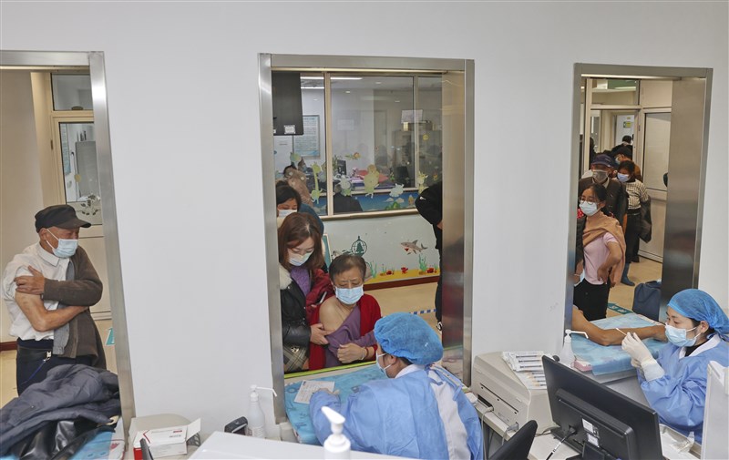 中國江蘇省南通市的一家社區衛生中心,為長者接種新冠疫苗。圖/美聯社