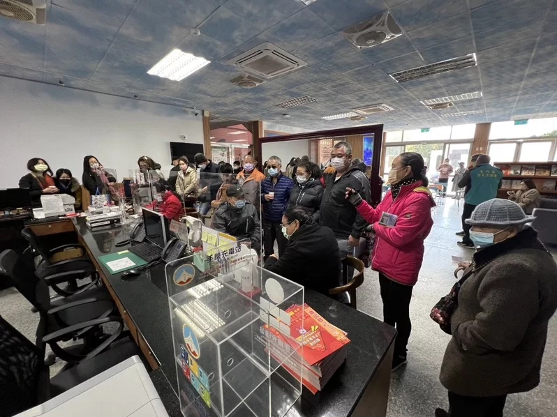 金門縣政府「小三通復航專案辦公室」,連續4天接受民眾到現場辦理搭船意願登記,首日一早就有不少民眾到場守候排隊。圖/蔡家蓁
