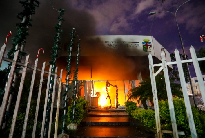 支持者放火焚燒地區檢察官辦公室,目前尚未傳出有任何傷亡。圖/美聯社