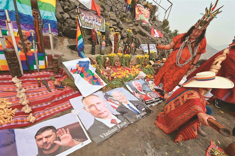 巫師預言世界大事 |2022.12.30 語音朗讀 487觀看次 字級 大 中 小 秘魯的薩滿巫師28日在首都利馬近郊的一座山丘上舉行儀式,預測明年可能發生的世界大事。巫師還在地上擺放烏克蘭總統澤倫斯基、俄國總統普亭、美國總統拜登等各國領導人肖像,進行預言。圖/法新社 秘魯的薩滿巫師28日在首都利馬近郊的一座山丘上舉行儀式,預測明年可能發生的世界大事。巫師還在地上擺放烏克蘭總統澤倫斯基、俄國總統普亭、美國總統拜登等各國領導人肖像,進行預言。圖/法新社 前一篇文章 銀蘭高鐵通車 銀川→←蘭州3小時可達 下一篇文章 南韓高速公路隧道大火 至少5死37傷 熱門新聞 01MLB太空人打敗洛磯 鄧愷威中繼成功2026.04.1602佛光大佛供奉法華塔與《法華經》信仰意涵2026.04.1203蔬食技巧 不吃肉也能補足蛋白質2026.04.1304澱粉食物 口感變化有祕訣2026.04.1305法全票通過 掠奪文物歸還中國2026.04.1706【深深思念】把悲傷 穿在身上2026.04.1407佛光山線上佛學院開學 逾百學員雲端共學2026.04.1508《浩瀚星雲》大阪海外首演 轟動滿座 2026.04.1409預備檀講師研習 傳播人間佛教正能量2026.04.1410高市國稅局長訪佛光山 認識人間佛教2026.04.13 訂閱電子報 台北市 天氣預報 台灣一週天氣預報 相關報導 剛果總統恩圭索連任 宣誓就職緬甸特赦數千人 翁山蘇姬減刑熊本地震10周年巴基斯坦:美伊將第2輪談判澳門國安教育展 機器人表演習會俄外長 敲定普亭上半年訪陸