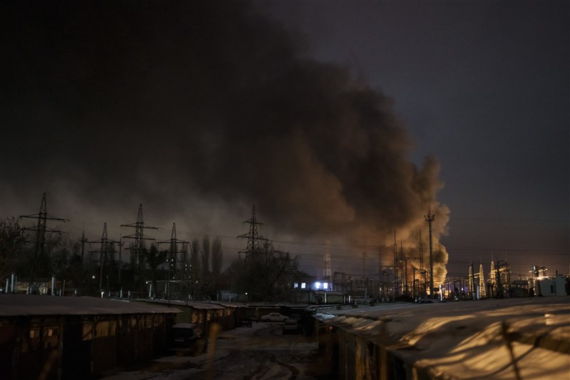圖為12月19日,俄羅斯無人機襲擊烏克蘭基輔地區後,電力基礎設施冒出滾滾濃煙。圖/美聯社