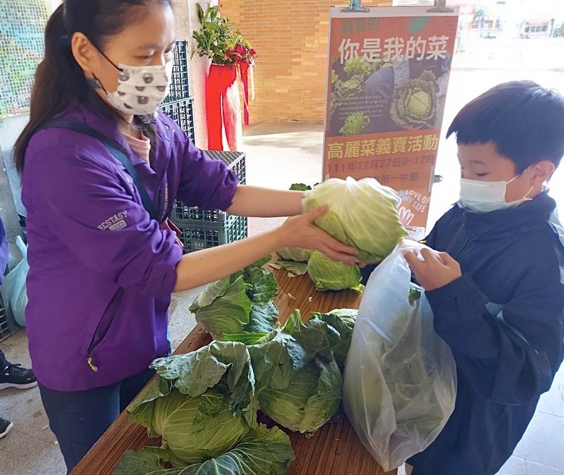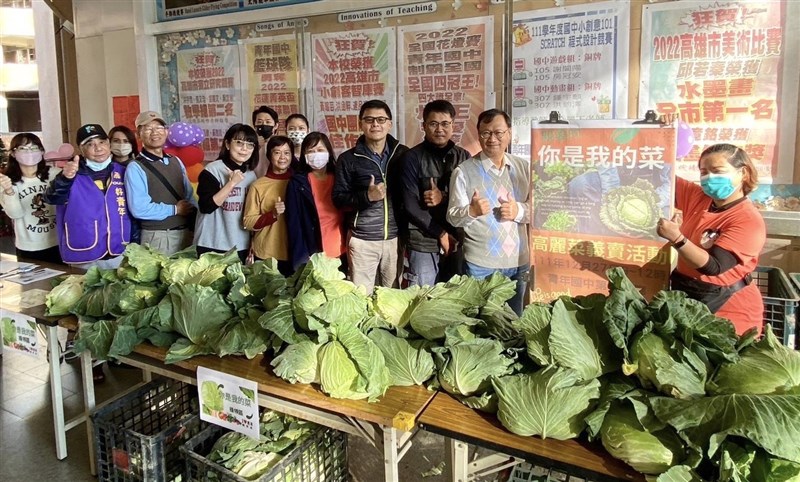 高雄市鳳山青年國中發起「高麗菜愛心義賣」,師生體驗當「一日菜販」義賣高麗菜,並將所得捐做學校高關懷與弱勢學生基金。圖/高市府教育局提供
