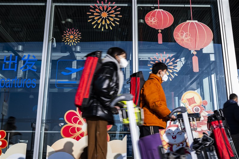 元旦假期首日,旅客前往北京首都國際機場,準備搭乘航班出行。圖╱中新社