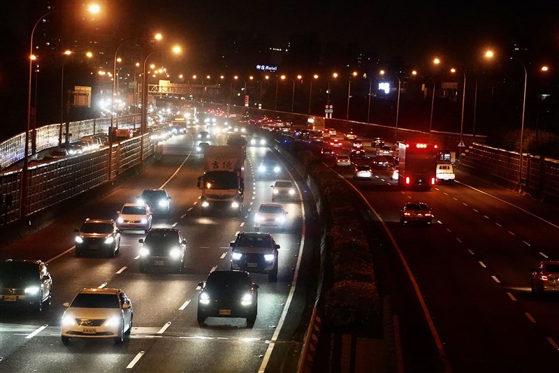 圖為12月30日,國道1號高雄段晚間出現不少往來車輛,不過未有明顯壅塞情形。中央社