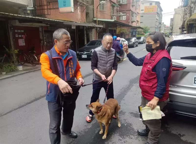 時值冬季天氣寒冷里長(左)擔心大黃進收容所狀況。圖/新北市動保處提供