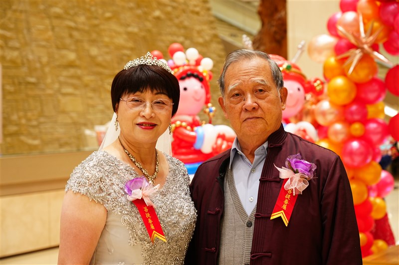 如今,蔡元惠戴頭紗、穿著銀色禮服,時光彷彿回到50年前,她也像個雙十年華的青春少女,手挽著汪耀家的手,歡喜走進大覺堂,臉上盡是嬌羞小女人的模樣,幸福洋溢。子女、親友來觀禮,大家給78歲的汪耀家、67歲的蔡元惠祝福,希望他們幸福滿滿、天天快樂!