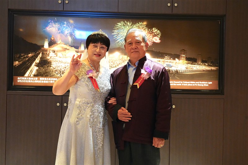 汪耀家(右)、蔡元惠(左)受邀參加「金婚」菩提眷屬祝福禮,兩人感受到婚姻更圓滿、幸福。圖/記者蔡忠宏