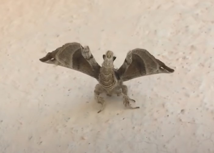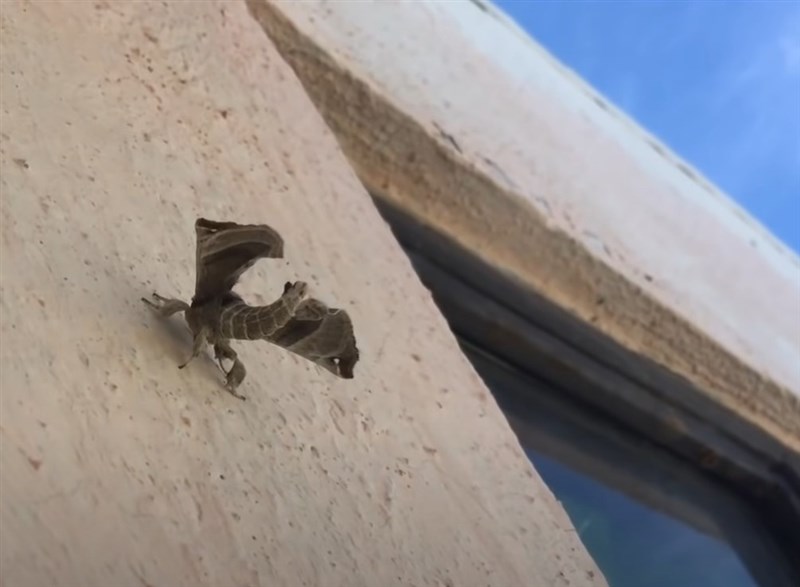 潔米也將飛蛾的身影拍了起來,在分享給家人看以後,大家都直呼牠好像是美國影集《權力的遊戲》(Game of Thrones) 的飛龍,只不過很顯然這隻飛蛾不會噴火,所以不用太擔心~雖然不久後飛蛾就離開了門廊,但潔米覺得自已非常幸運能遇見這麼特別的訪客,也期盼迷你龍或其他宛如神話的小生物再次到來!