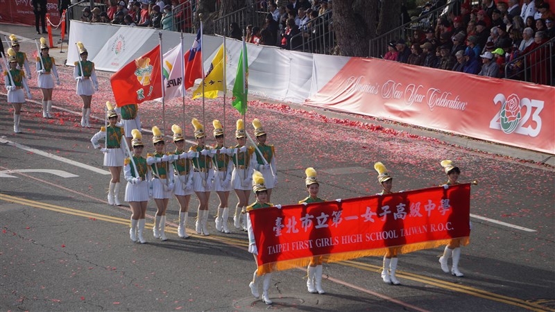 北一女樂儀旗隊在美國時間2日登上玫瑰花車遊行,沿路75萬名觀眾熱情歡呼,參與的學生在終點受訪說「大家辛苦了,我覺得我們很棒」。圖/中央社