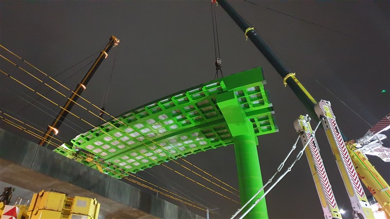 全台首座捷運高架橋跨高鐵 桃園團隊半小時完成 |2023.01.05 語音朗讀 901觀看次 字級 大 中 小 吊裝鋼U型梁是全台首座捷運高架橋跨越高鐵軌道的工程,須事先提報施工計畫,交通部、高鐵同意後才能施工。圖/鄭國樑 【本報桃園訊】桃園捷運綠線GC01標高架段工程團隊今天(5日)凌晨利用高鐵收班,在蘆竹區南青路、南崁路二段路口,跨越高鐵上空吊裝鋼U型梁,近1點20分完成31公尺長、7公尺寬的鋼U型梁接合吊裝,隨後開始梁栓穿鎖、鎖斷等工程,而且必須在4點半高鐵限制時間內完成。工程必須符合跨越高鐵淨高及桃園機場限高規定,施工團隊克服各項困難,並採用750、700、500噸級3輛先進吊車,完成首座捷運高架橋跨高鐵軌道。高架橋上工程團隊緊盯鋼U型梁吊裝結合細節。圖/鄭國樑市政府詹榮鋒秘書長在捷工局長劉慶豐陪同下,在現場全程了解鋼U型梁接合吊裝,並聽取第一工務所主任郭瑞乾簡報,同時慰勞辛勤第一線工作人員。詹榮鋒指出,能順利完成國內首座捷運高架橋跨高鐵軌道,歸功於捷工局同仁及整個施工團隊,一開始縝密的規畫設計,以及施工前不斷的模擬優化,不畏夜晚低溫施工終於完成本項創舉,也為桃園捷運綠線的通車向前邁進一大步。他說,市府將持續要求施工團隊繼續秉持安全堅若磐石,品質第一理念,如質、如期完成高架段先期通車目標。約0點48分開始吊裝鋼構U型梁,1點18分順利完成國內首座捷運高架橋跨高鐵軌道創舉。圖/鄭國樑另外,吊掛現場的施工可能產生局部噪音,詹榮鋒也請鄉親們能夠體諒,他期許施工團隊能在安全、品質兼顧的前提下掌握效率,降低對民眾生活影響工務所主任郭榮乾(左起)向秘書長秘書長詹榮鋒簡報,捷工局長劉慶豐全程陪同。圖/鄭國樑捷工局表示,桃園捷運綠線高架段橫跨八德、蘆竹及大園3個行政區,目前已進入上部結構施工高峰期,因高架段路線跨越台灣高鐵軌道需符合台灣高鐵淨高12.7m規定,又受限於桃園國際機場航高限制,特別設計墩柱高度約29米,跨度超過42米的鋼構U型梁,以減少梁身高度方式跨越高鐵軌道。 前一篇文章 6日冷氣團南下 北部低溫有機會下探13度 下一篇文章 東石漁人碼頭成海景遊樂園 走春新亮點 熱門新聞 01與精品品牌撞鞋 印度涼鞋打專利戰2025.12.2102銀杏點亮.東京印象2025.12.2303邂逅佛教 安頓身心2025.12.2104【動物奧斯卡獎】猜猜誰最會演(上)2025.12.2105【守護家人】 為愛築家2025.12.2306北捷英雄捨身救人 母盼菩薩接引2025.12.2307【佛教管理學②】人間佛教的「治心十法」⑩2025.12.2108社論--瞋恨的危害2025.12.2109降噪耳機原理2025.12.2210數位科技與信仰交會 推播人間佛教文化2025.12.22 訂閱電子報 台北市 天氣預報 台灣一週天氣預報 相關報導 今年最後一波冷氣團來襲 明天起回暖碧砂漁港 打造全台最大遊艇碼頭雪山三六九山莊重建 尋求調解藍白推未來帳戶 拚立院本會期審議 淡水河畔 初冬小花海台東昨6.1地震 氣象署:恐有餘震