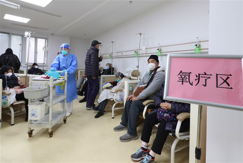 北京市1家醫院急診室內,擠滿感染新冠患者及其家屬。圖╱法新社