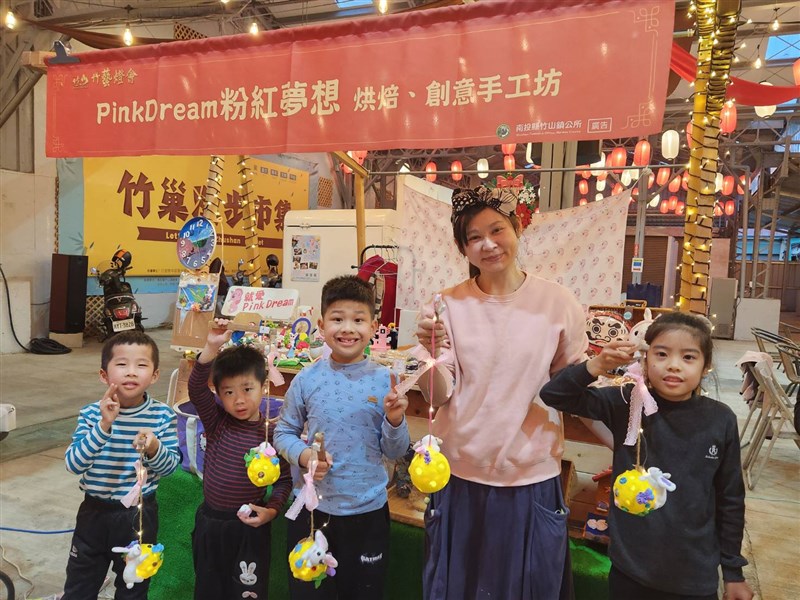 燈會主展區位於竹山老街上,竹巢市集也是燈區之一,有別於其他燈區,這裡集結了多位文創設計者,於每周末下午三時到五時,推出親子DIY手做活動,首先登場的是「提兔燈籠」,不少家長與孩童跟著老師一步步利用黏土,將小一號主燈做出來,並帶著自己做的成品逛燈會、趣味盎然。