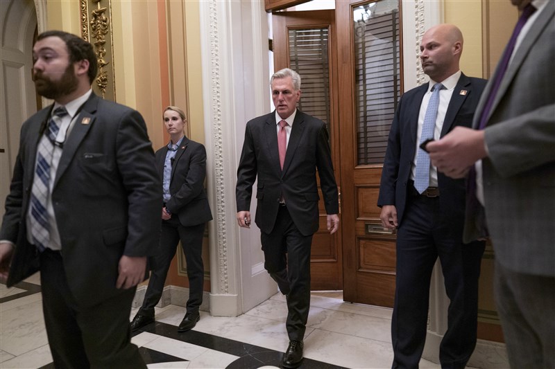 美國聯邦眾議院議長選舉進入第三天第11輪,眾院共和黨領袖麥卡錫(中)依舊挑戰議長失利。圖/美聯社
