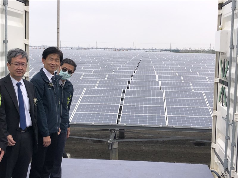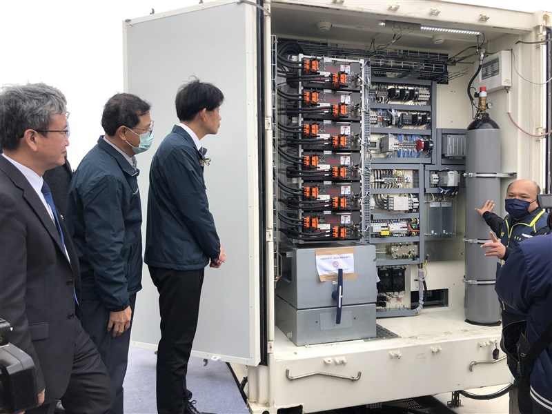 王耀庭表示,台電先前於金門設置夏興電廠、蘭嶼電廠設置儲能系統,打造離島智慧電網,今首度結合前年啟用的台南鹽田光電場,與新能源企業聯合再生設置首座「光儲合一」結合綠能的儲能系統,20MW百萬瓦容量也創下國內最大。儲能系統具快速充放電特性,可協助太陽光電發電併入電網的穩定調節,亦可與現有機組相互搭配,提升電力系統穩定與彈性,遇突發電力事件時立即提供穩定電力。