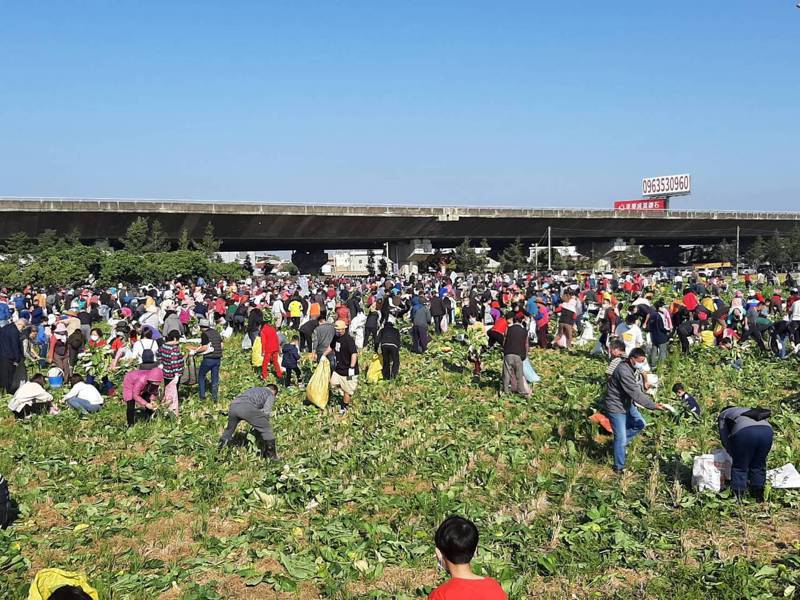 彰化芬園鄉農會農民合作種植蘿蔔,開放民眾免費採,去年人潮相當多。圖/李進源提供