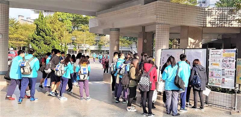 111學年度大學入學考試中心舉辦之學科能力測驗,學生查看考場資料照。圖/新北教育局提供