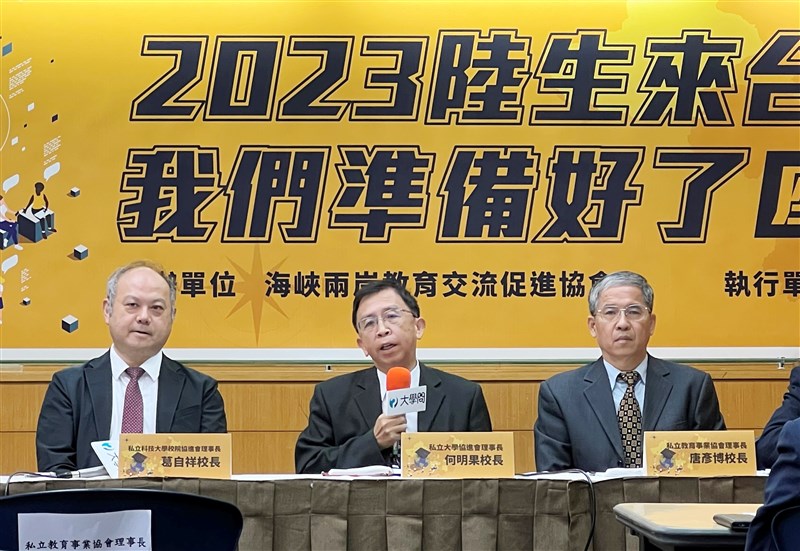 陸委會表示,雖陸生持續減少,但這學年結束後預估將有2000多名陸生在台就學,沒有「掛零」情形。圖為去年多名台灣私立大專代表在台北舉辦座談會,希望兩岸相關單位積極協商,於2023年重啟陸生來台。圖/中央社