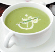 4. 裝入碗中,鮮乳脂淋成花形,就完成了碧綠好喝的濃湯。